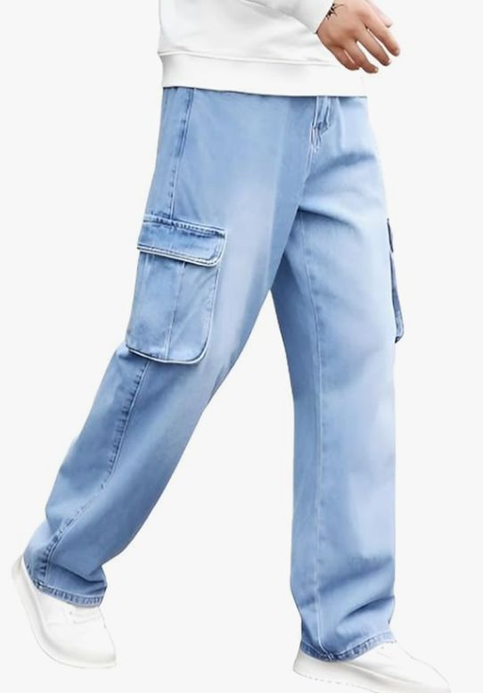 Men's Denim Cotton Cargo Jeans || Stretchable Baggy Fit || High Waist Loose Cargos for Men with Box Pockets || Stylish Gen-Z Streetwear